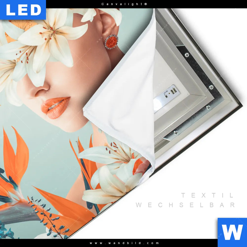LED-Textilrahmen-Bild mit austauschbarem Porträts - Menschen, Blumen - Botanik Textil-Druck (Wechselbild)