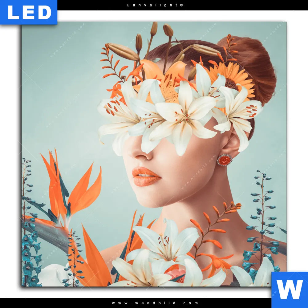 Canvalight® Leuchtbild | Florales Frauenporträt - Viola | Quadrat