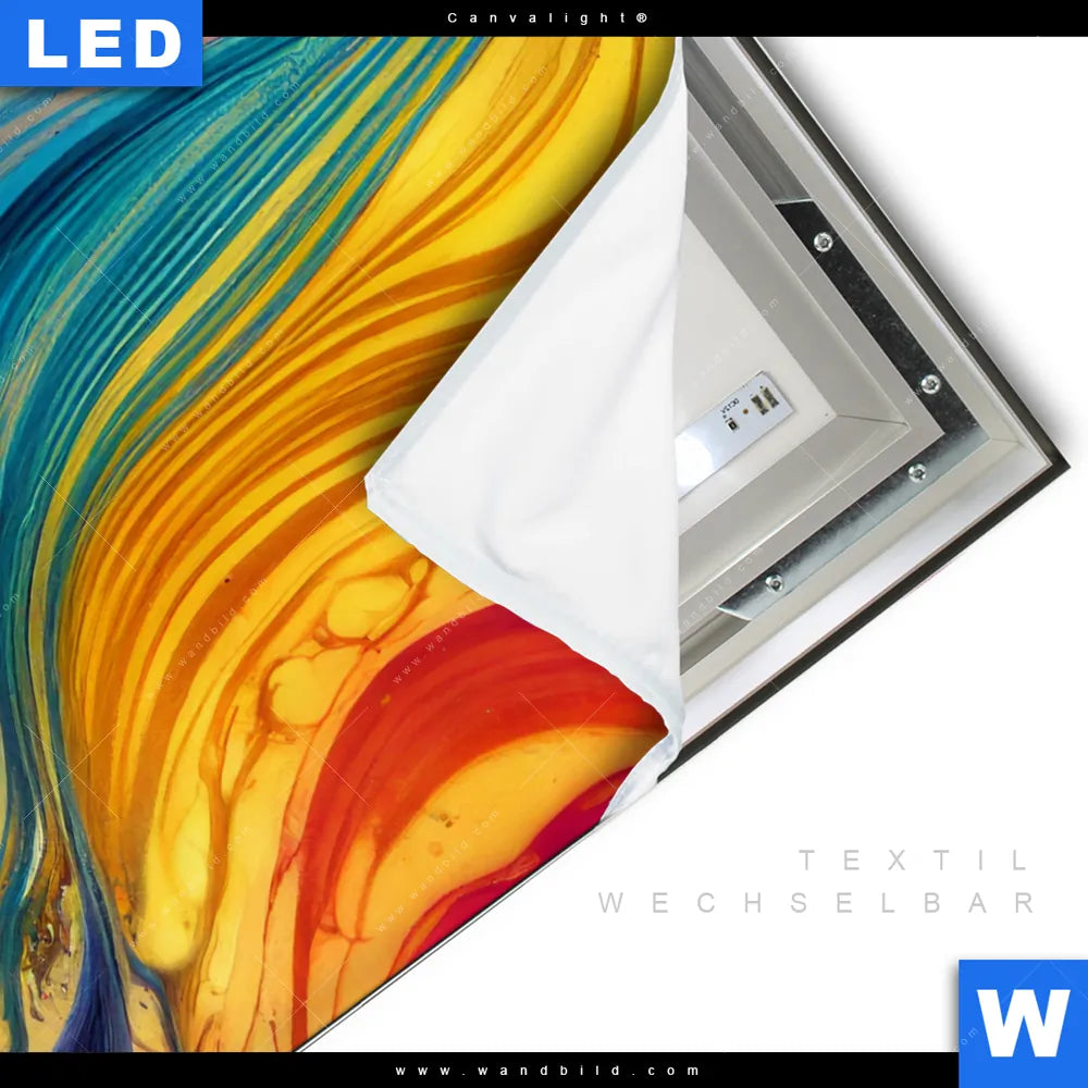 LED-Textilrahmen-Bild mit austauschbarem Muster - Texturen, Strand - Meer Textil-Druck (Wechselbild)