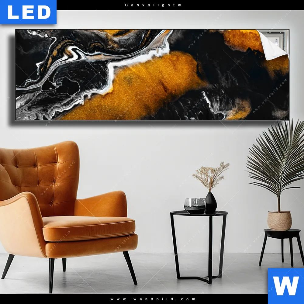 Canvalight® TEX Leuchtbild | Fluid Art Schwarzes Meer | Panorama