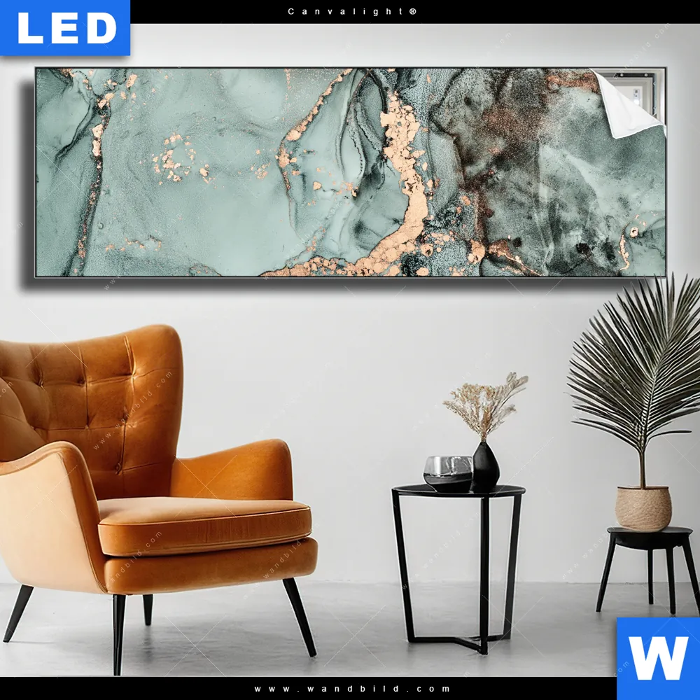 Canvalight® TEX Leuchtbild | Fluid Art Türkis | Panorama