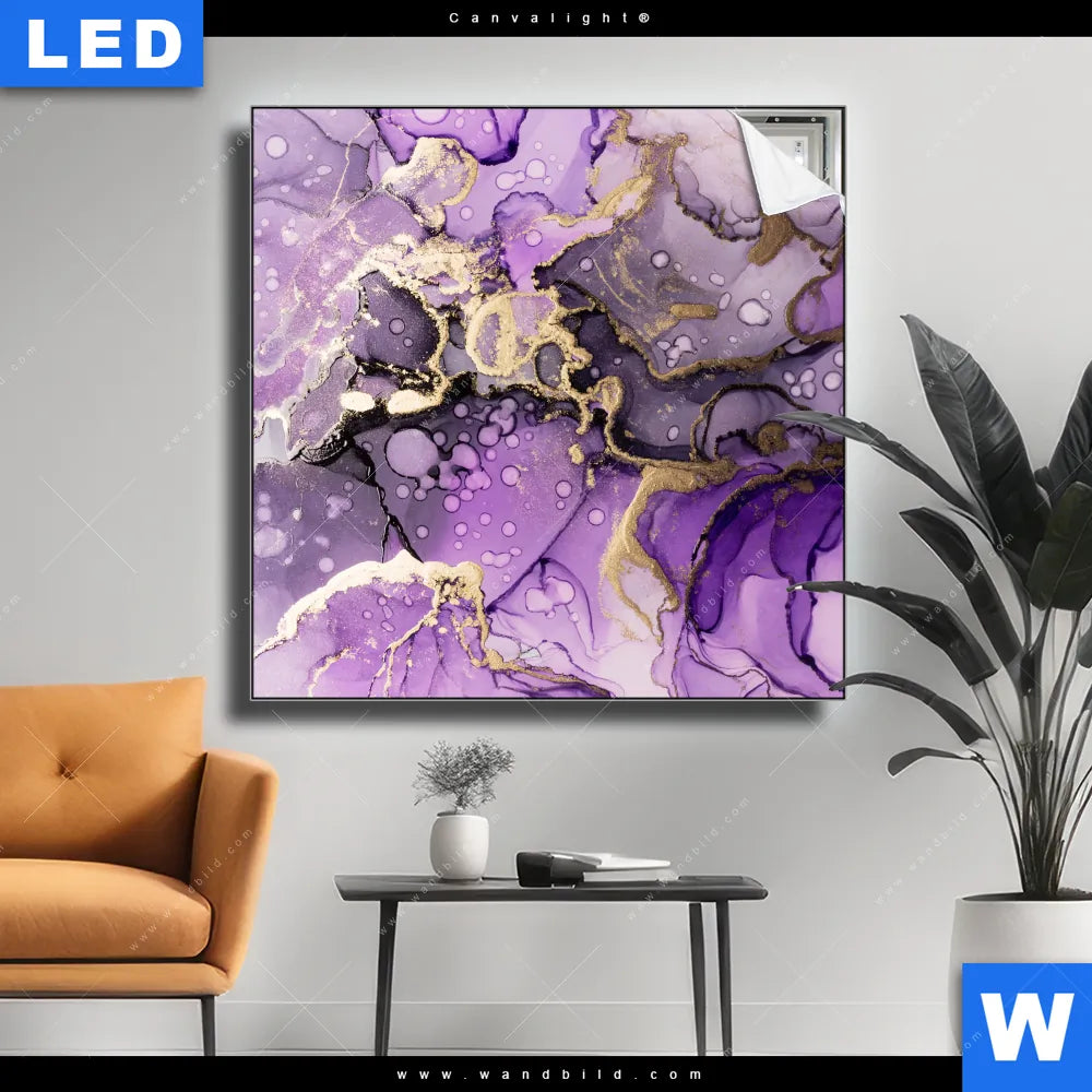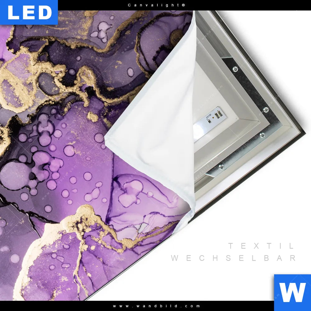 Canvalight® TEX Leuchtbild | Fluid Art Violett | Quadrat