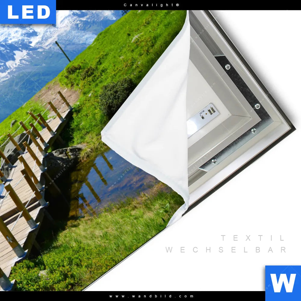 LED-Textilrahmen-Bild mit austauschbarem Landschaften Textil-Druck (Wechselbild)
