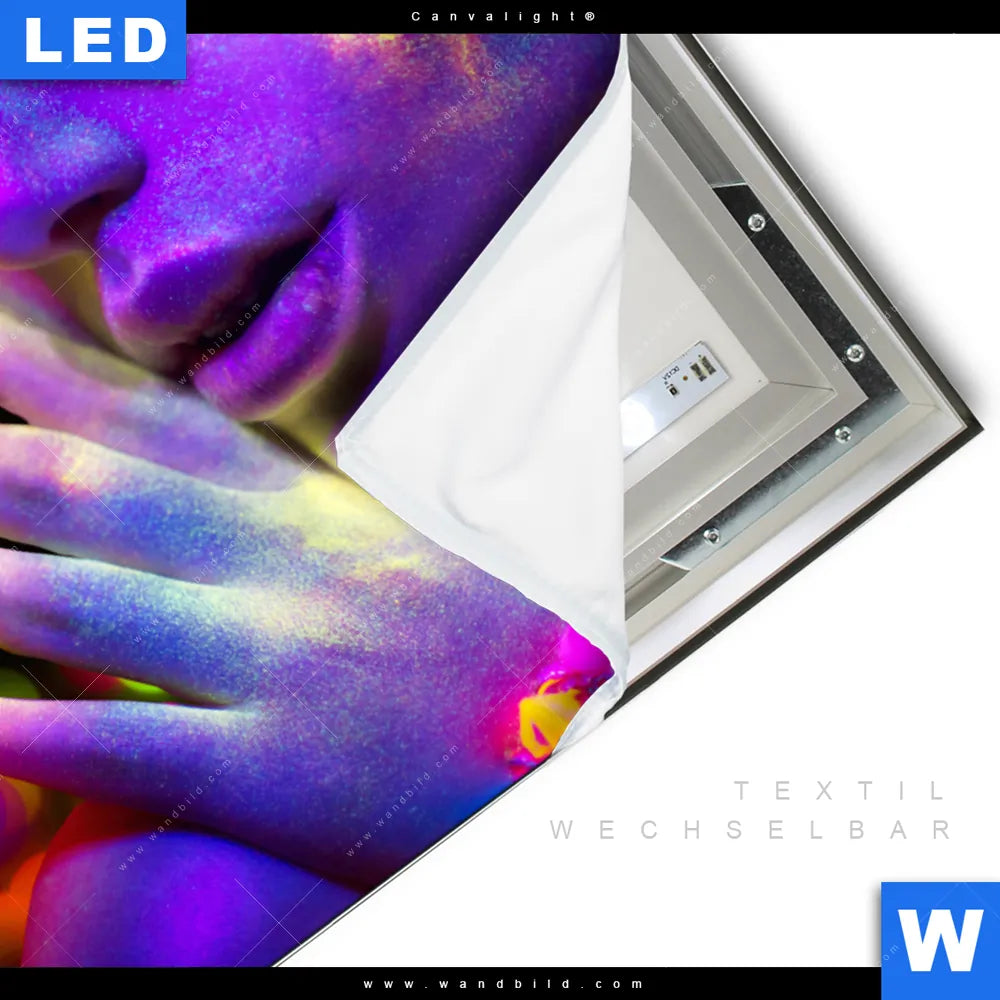 LED-Textilrahmen-Bild mit austauschbarem Porträts - Menschen Textil-Druck (Wechselbild)