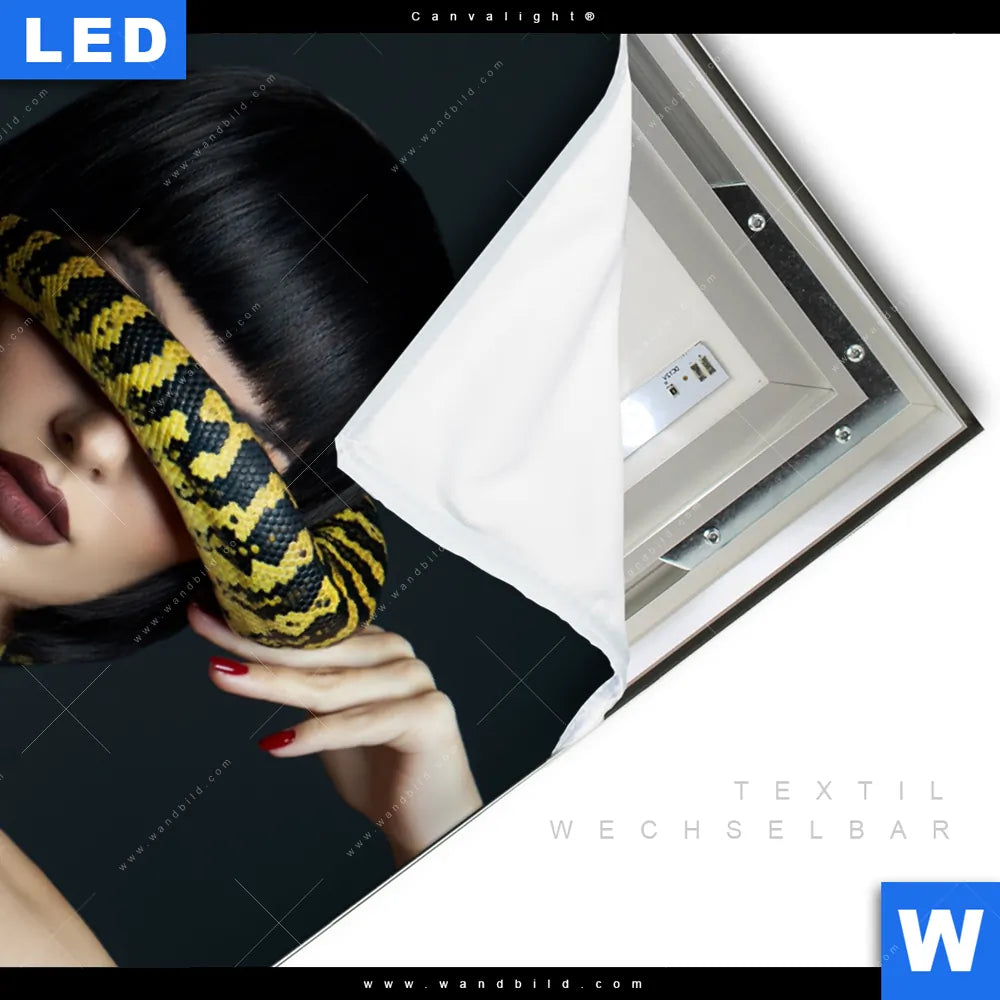 Canvalight® TEX Leuchtbild | Frau mit gelber Schlange | Hochformat