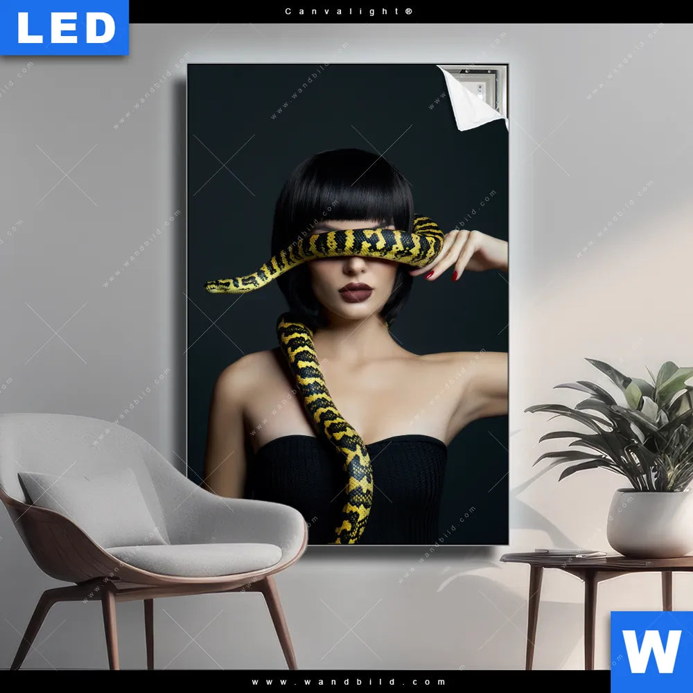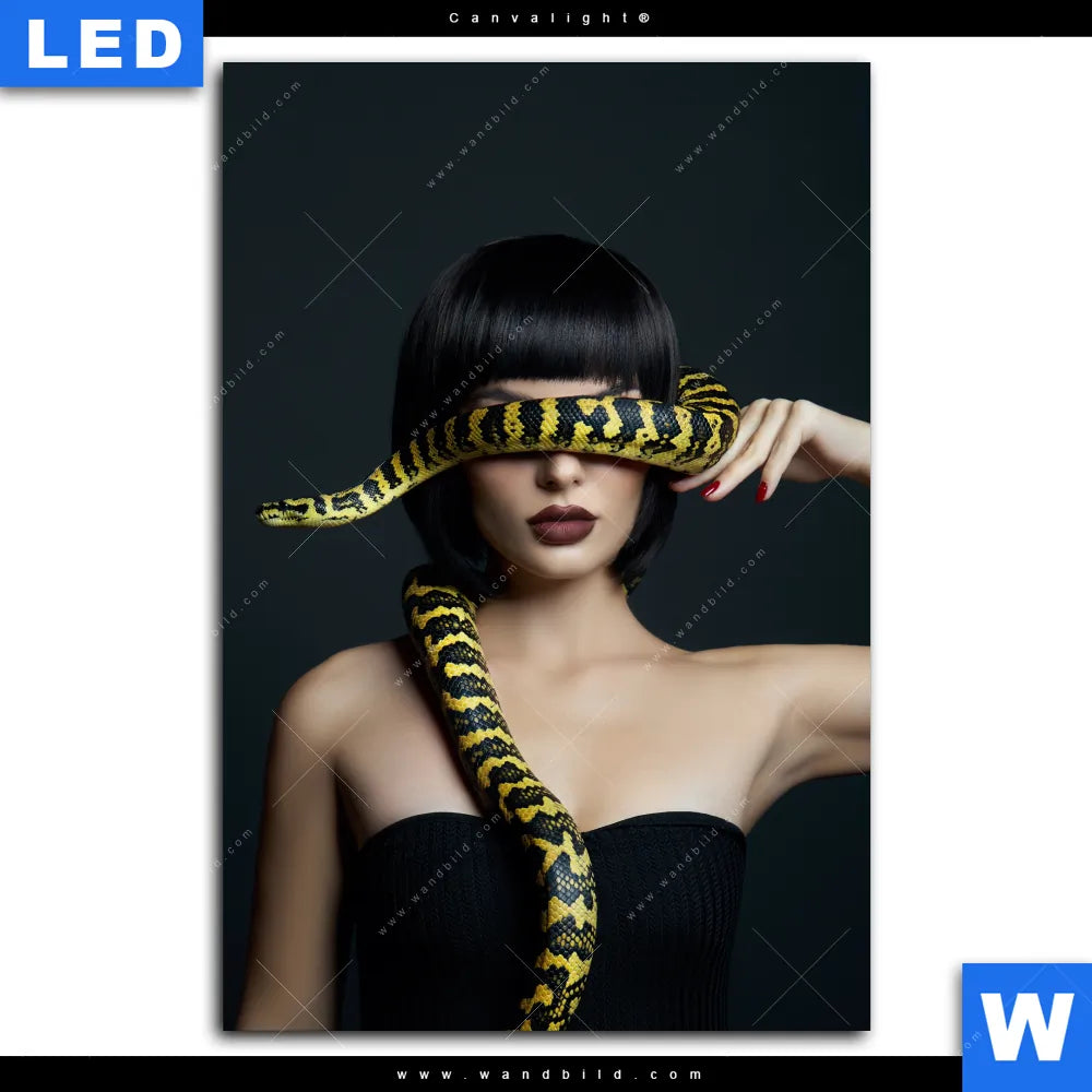 Canvalight® Leuchtbild | Frau mit gelber Schlange | Hochformat