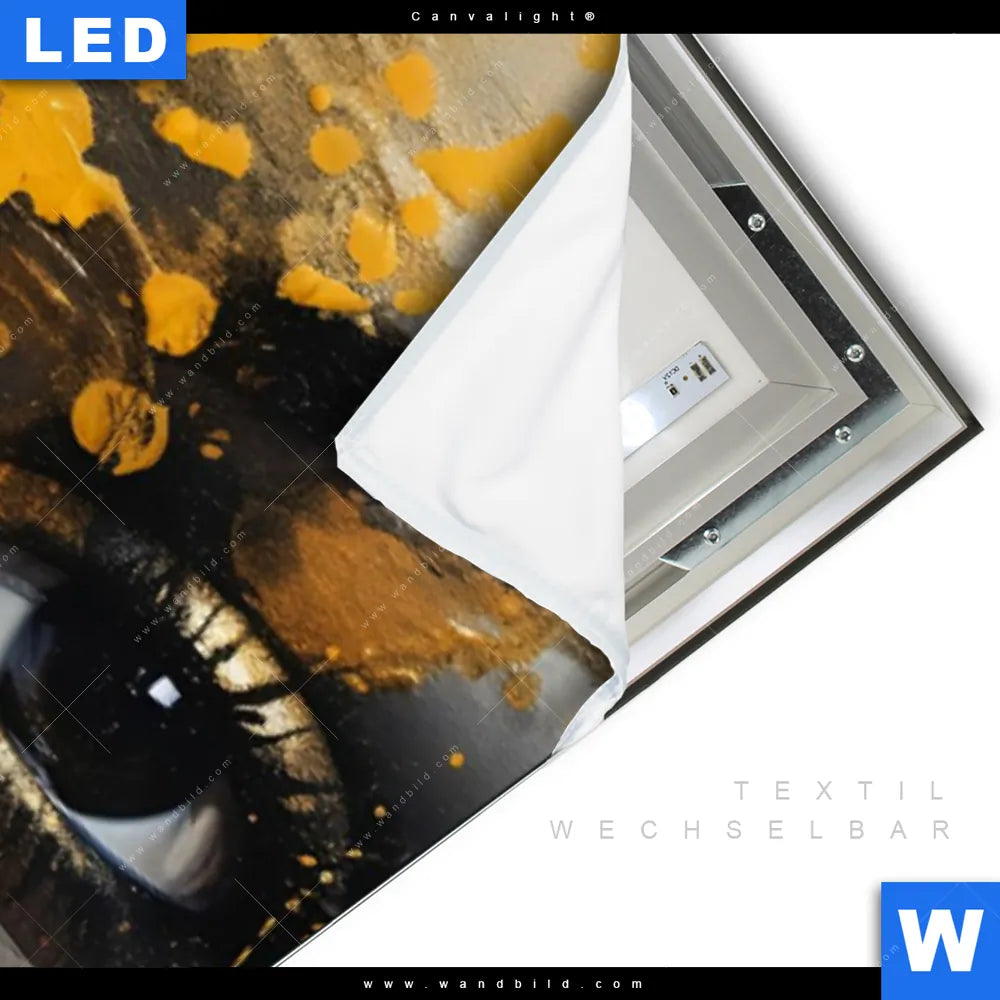 Canvalight® TEX Leuchtbild | Frau mit Goldfarbe | Schmal