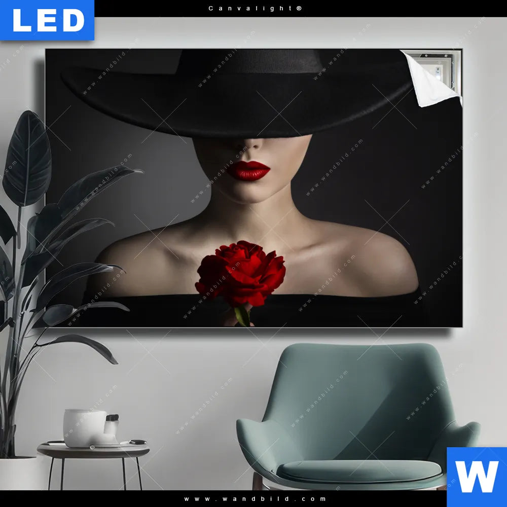 Canvalight® Leuchtbild | Frau mit Hut & Rose | Querformat