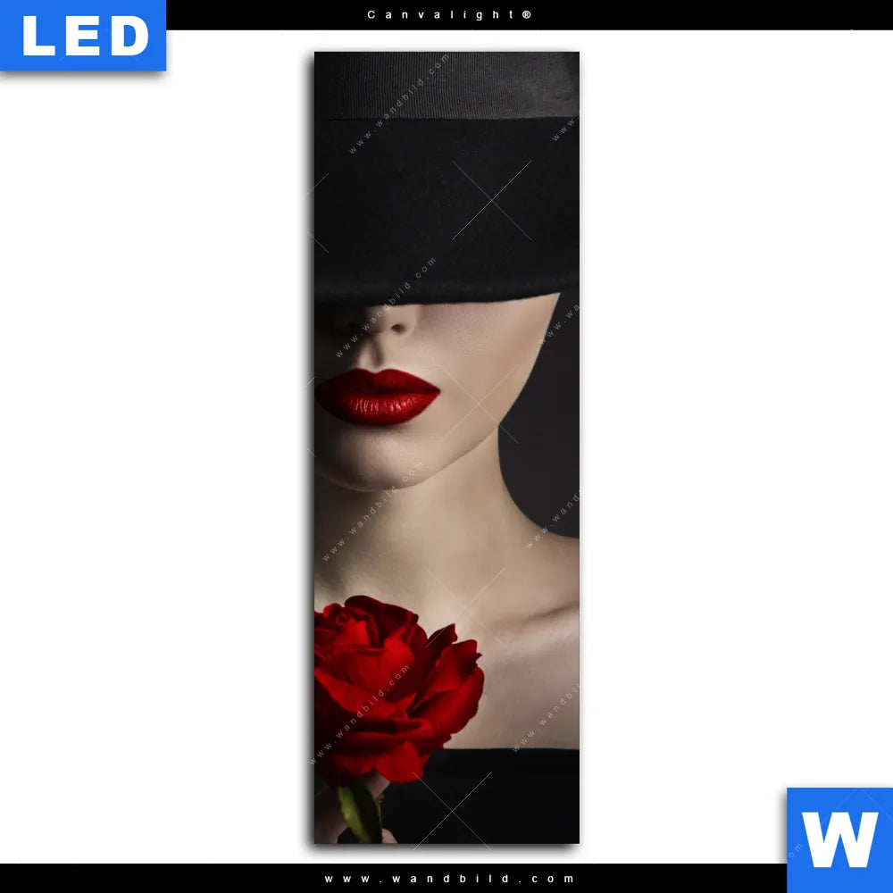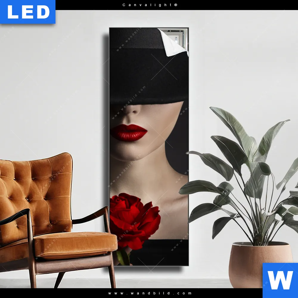 Canvalight® TEX Leuchtbild | Frau mit Hut & Rose | Schmal