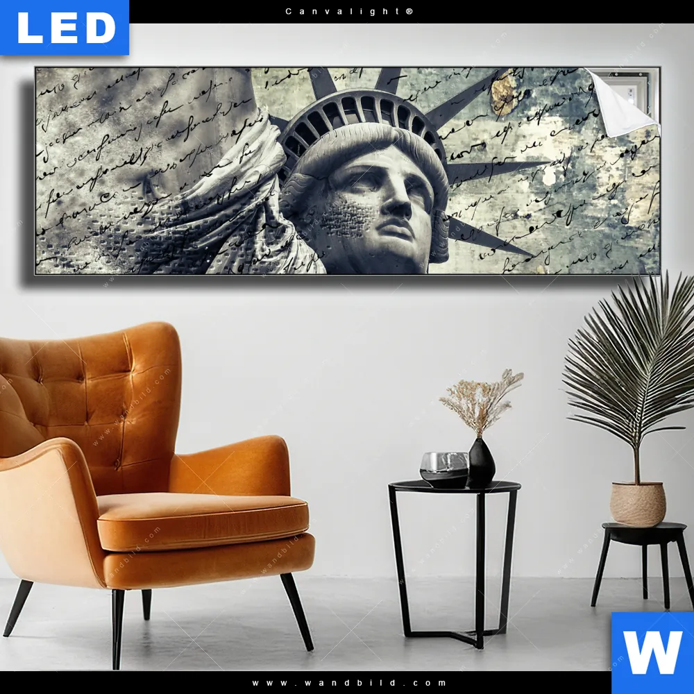 Canvalight® TEX Leuchtbild | Freiheitsstatue im Sandsturm | Panorama