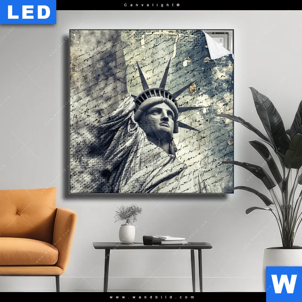 Canvalight® TEX Leuchtbild | Freiheitsstatue im Sandsturm | Quadrat