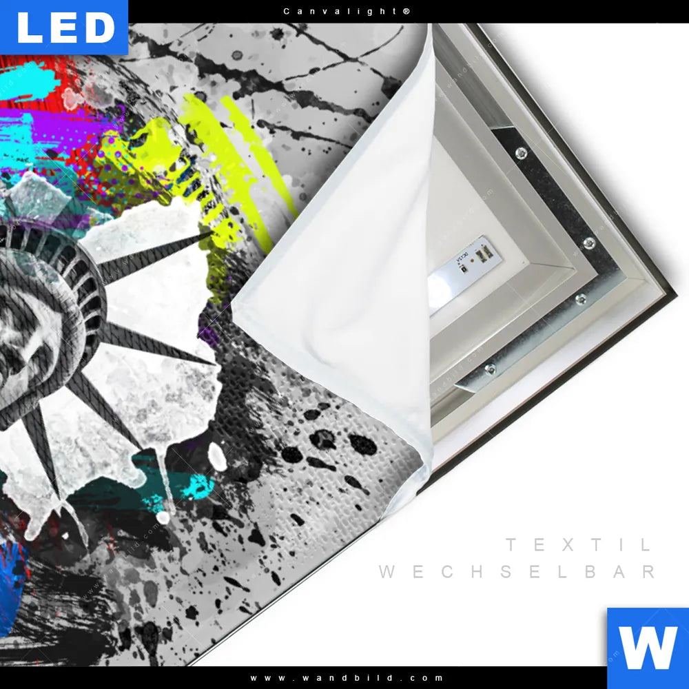 Canvalight® TEX Leuchtbild | Freiheitsstatue Pop Art No.1 | Hochformat