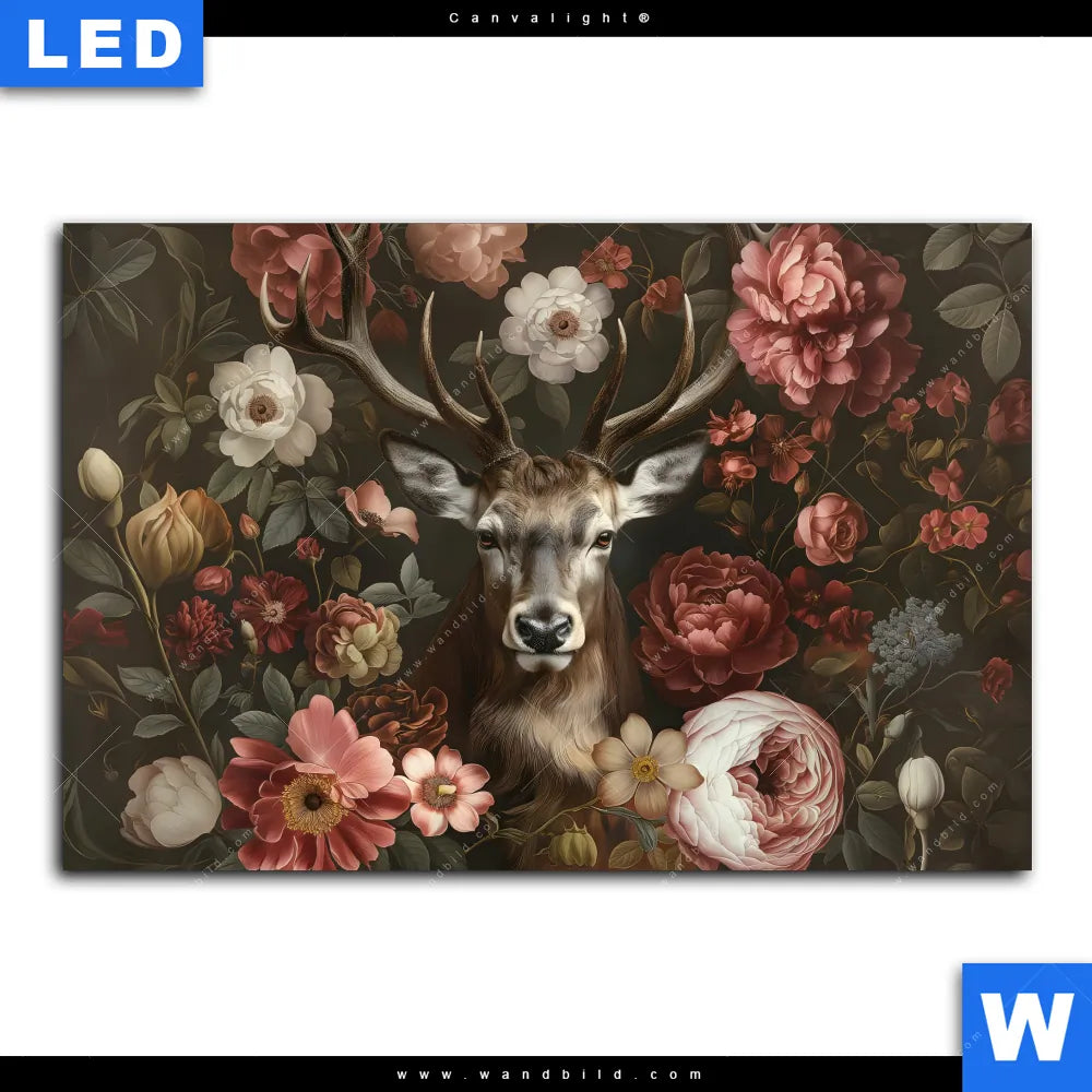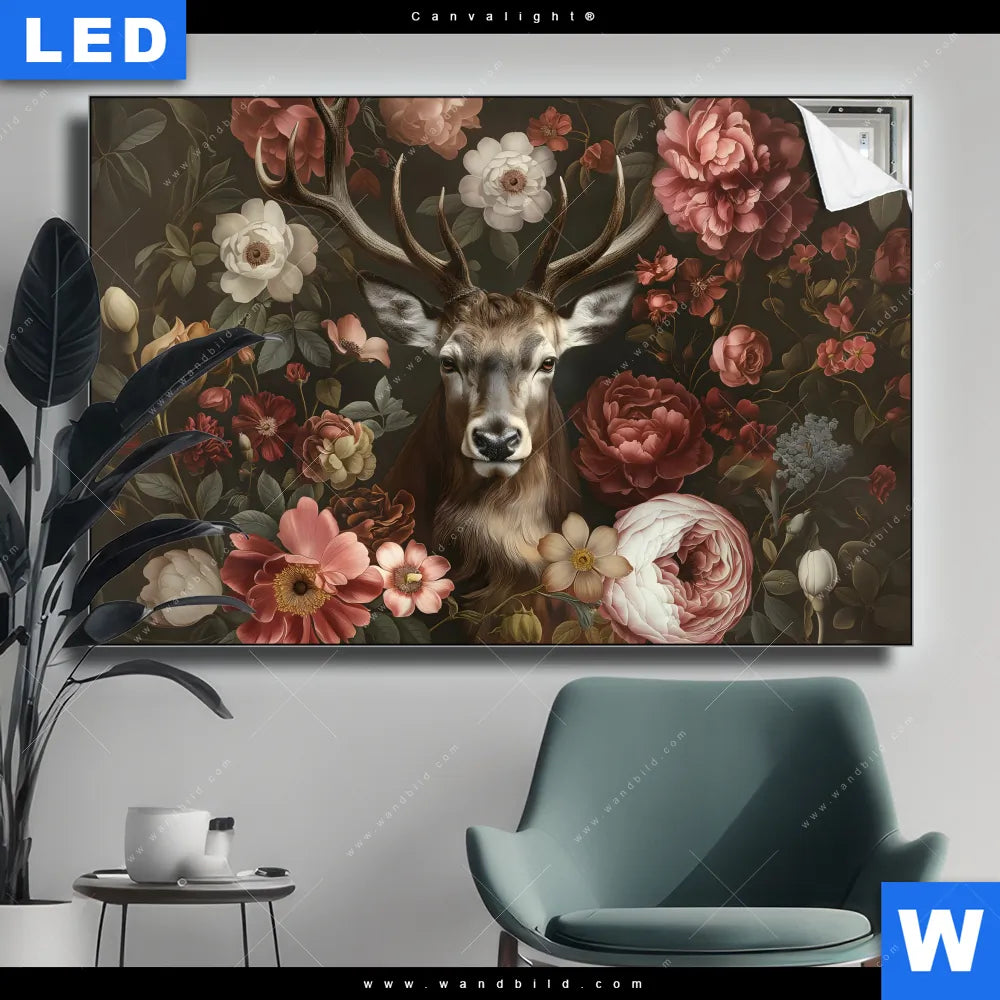 Canvalight® Leuchtbild | Friedlicher Hirsch und Blüten | Querformat