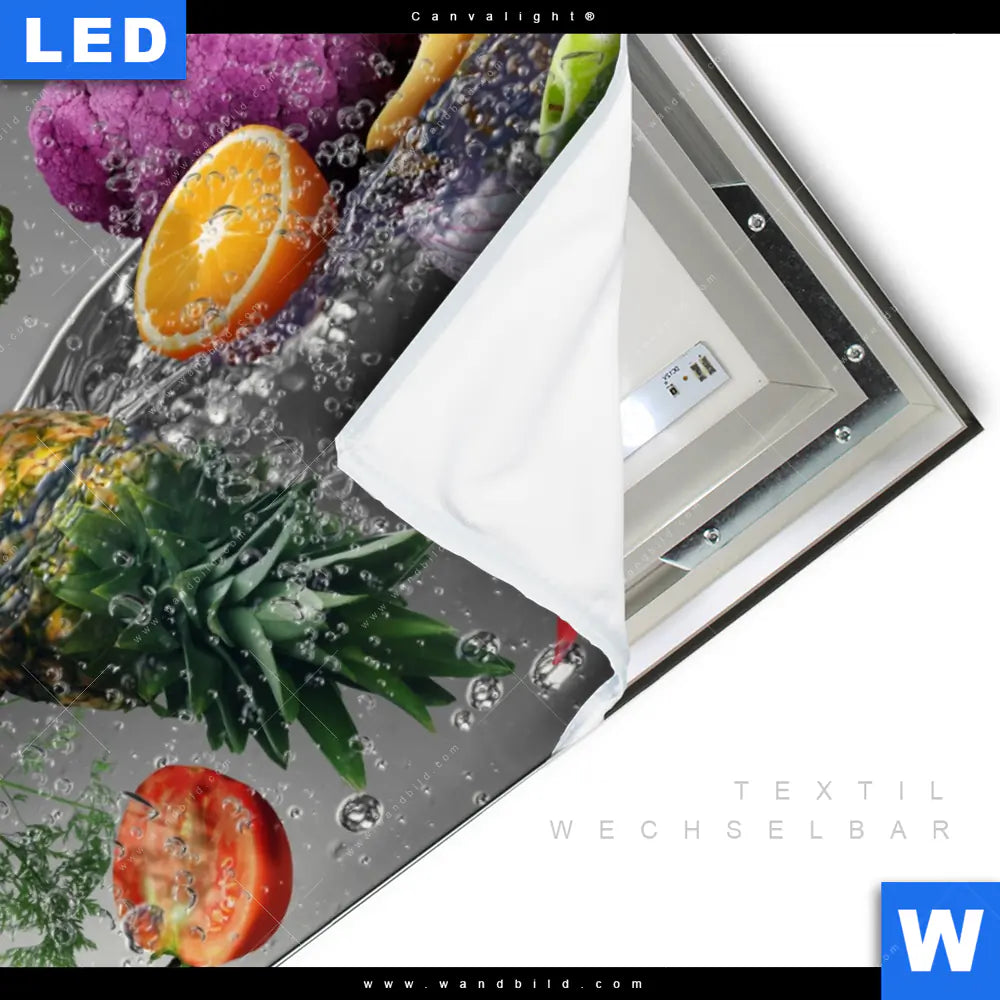 LED-Textilrahmen-Bild mit austauschbarem Essen - Trinken Textil-Druck (Wechselbild)