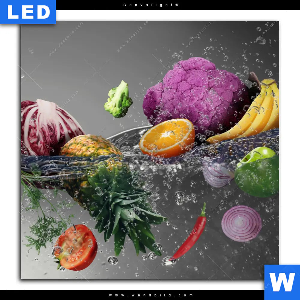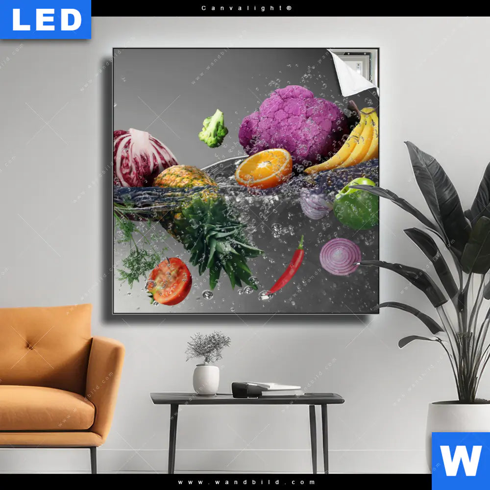 Canvalight® TEX Leuchtbild | Frische Gemüse-Explosion | Quadrat