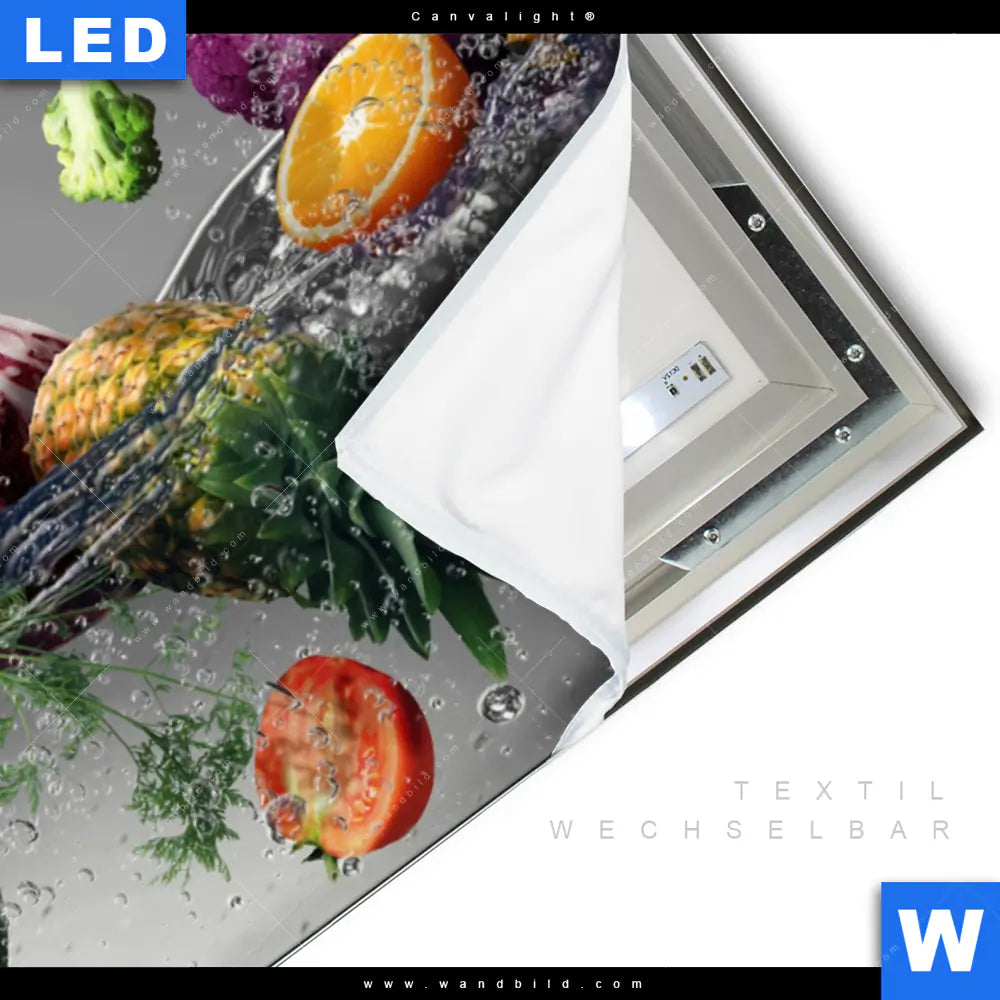 LED-Textilrahmen-Bild mit austauschbarem Essen - Trinken Textil-Druck (Wechselbild)