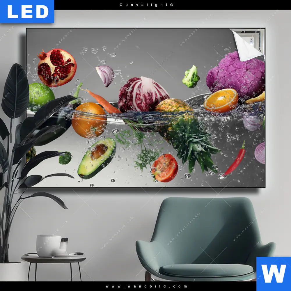 Canvalight® TEX Leuchtbild | Frische Gemüse-Explosion | Querformat