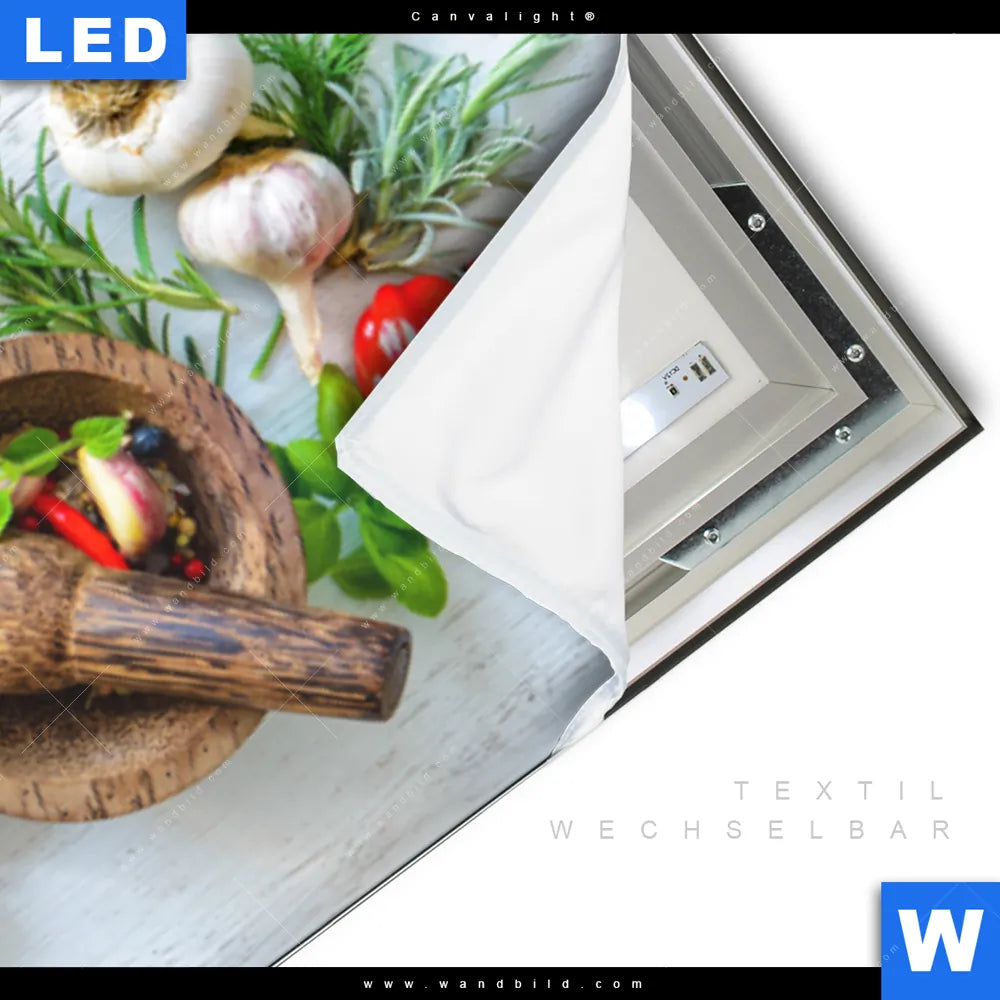 LED-Textilrahmen-Bild mit austauschbarem Essen - Trinken Textil-Druck (Wechselbild)