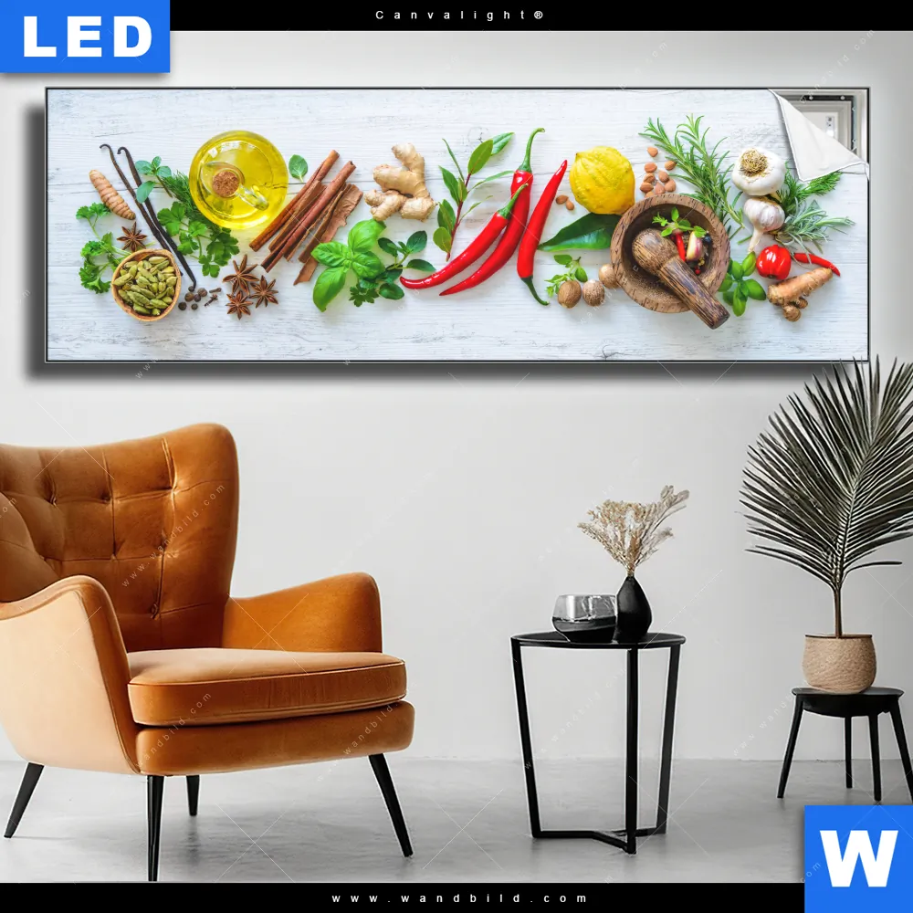 Canvalight® Leuchtbild | Frische Kräuter & Gewürze | Panorama