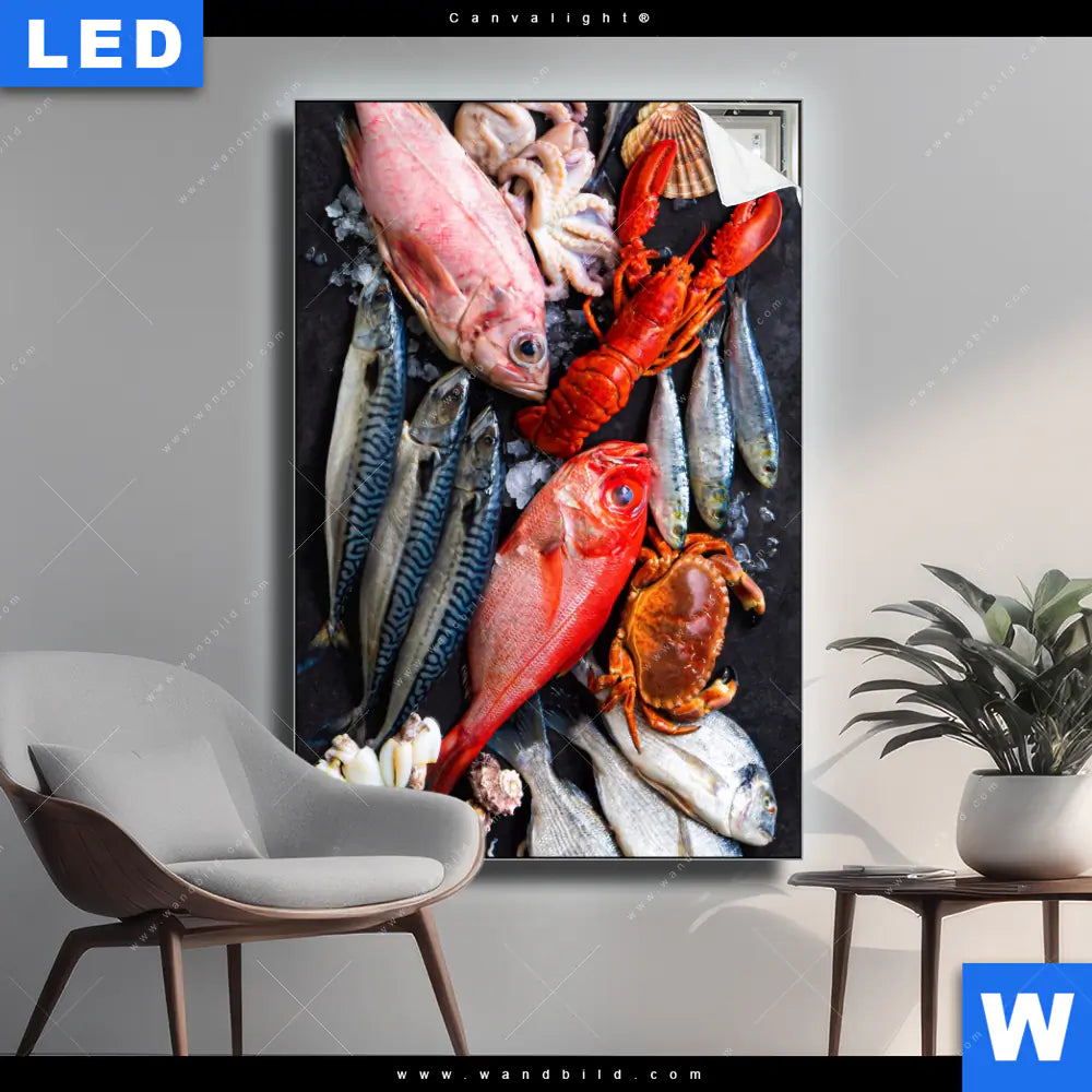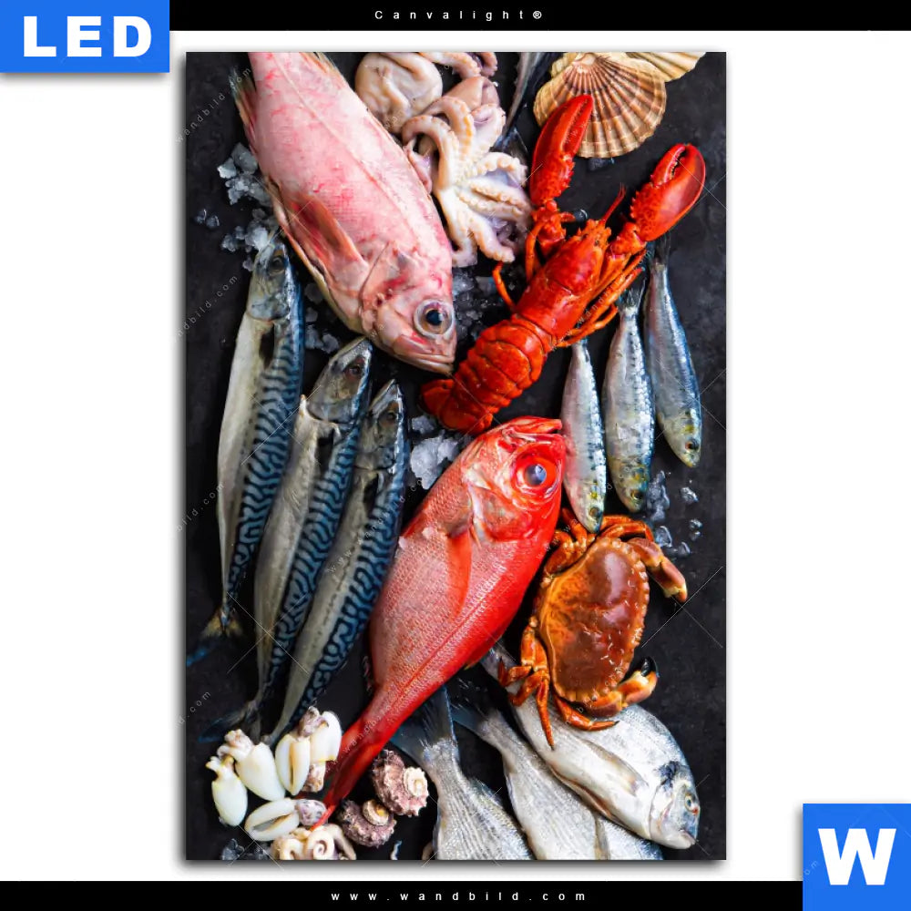 Canvalight® Leuchtbild | Frischer Fisch und Meeresfrüchte | Hochformat