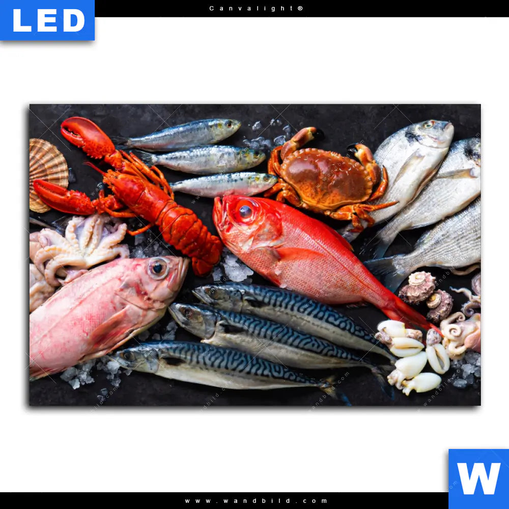Canvalight® Leuchtbild | Frischer Fisch und Meeresfrüchte | Querformat