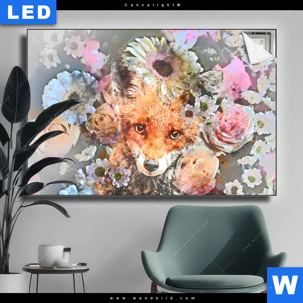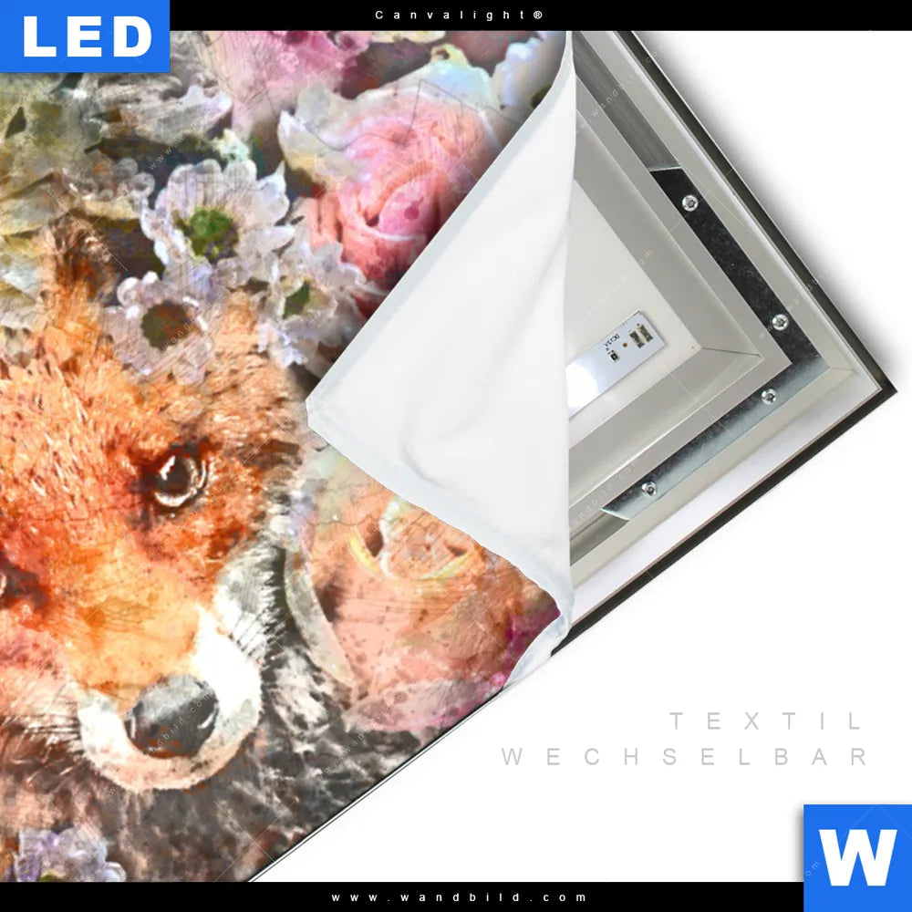 Canvalight® TEX Leuchtbild | Fuchs & Blumen | Querformat