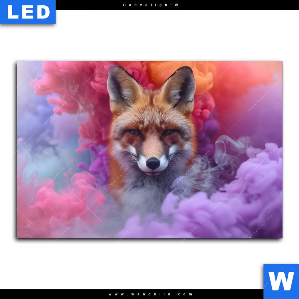 Canvalight® Leuchtbild | Fuchs in Farbnebel | Querformat
