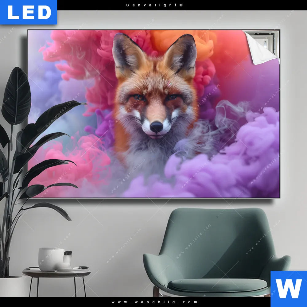 Canvalight® TEX Leuchtbild | Fuchs in Farbnebel | Querformat