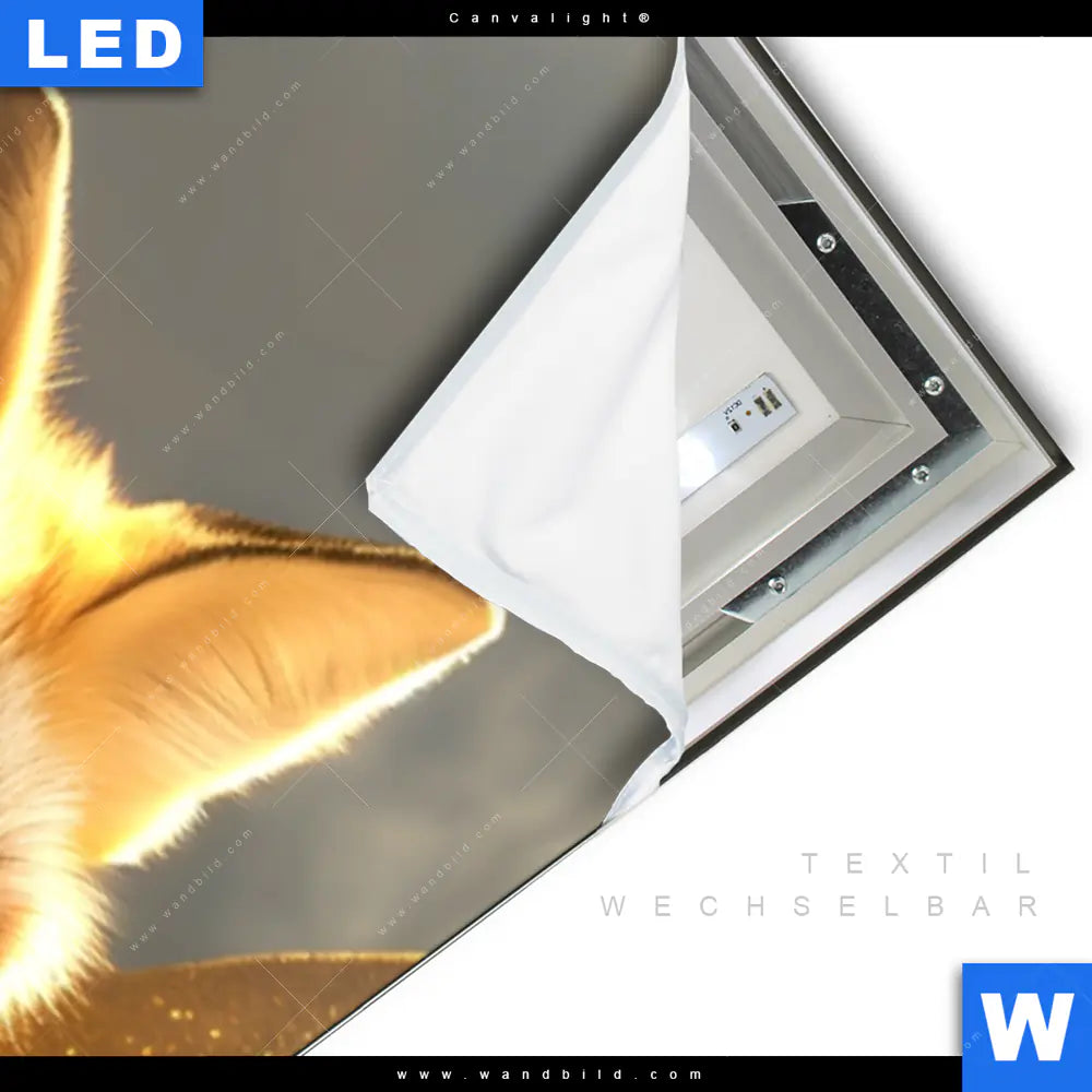 LED-Textilrahmen-Bild mit austauschbarem Tierwelt Textil-Druck (Wechselbild)