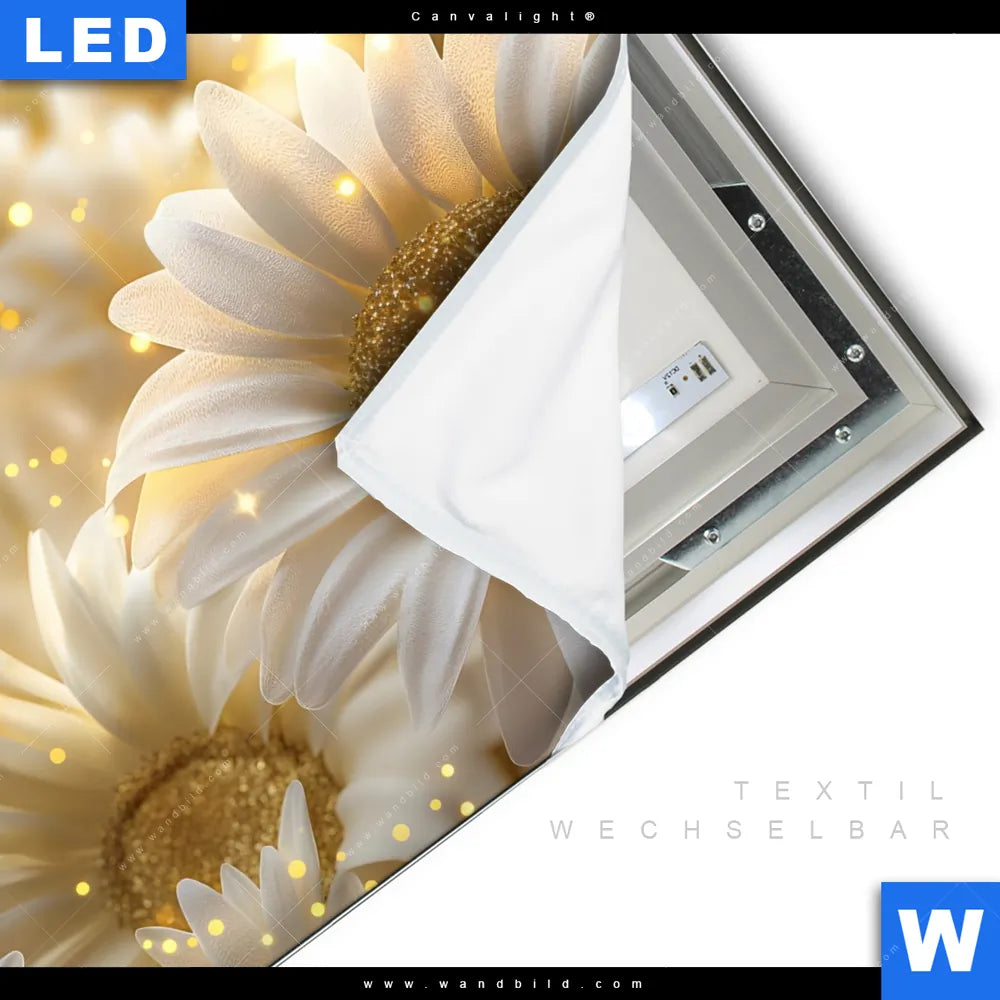 LED-Textilrahmen-Bild mit austauschbarem Blumen - Botanik Textil-Druck (Wechselbild)