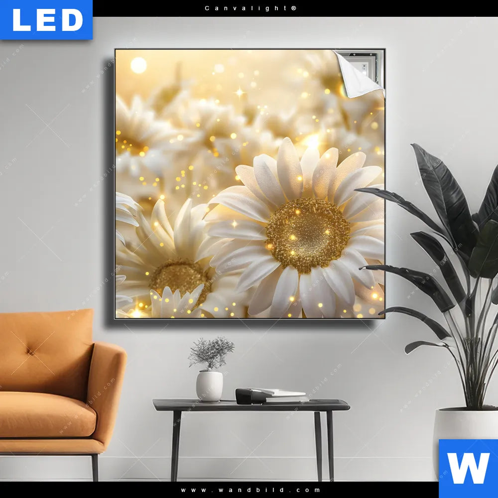 Canvalight® TEX Leuchtbild | Funkelnde Blumen in Gold | Quadrat