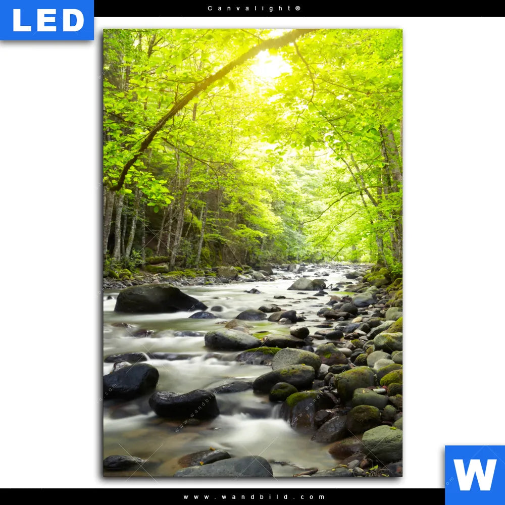 Canvalight® Leuchtbild | Gebirgsfluss im Wald | Hochformat