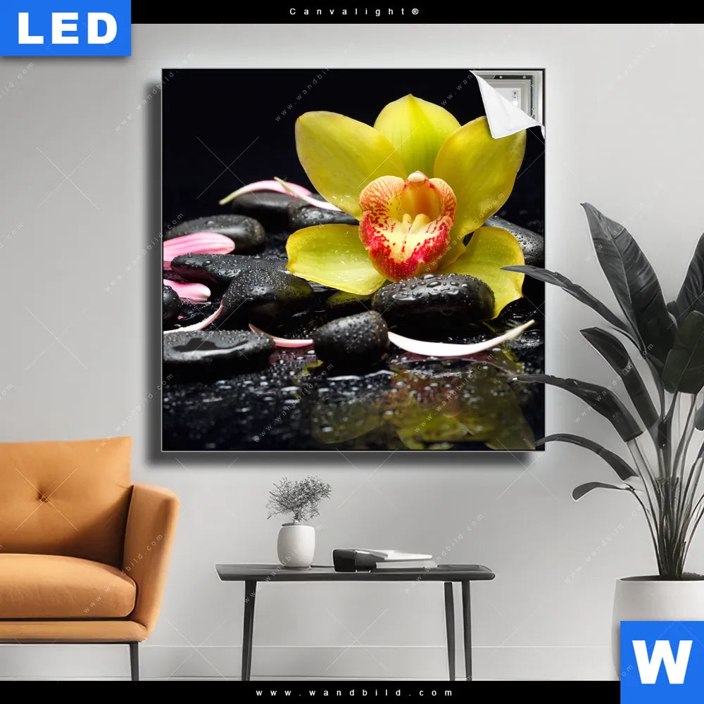 Canvalight® TEX Leuchtbild | Gelbe Orchidee | Quadrat