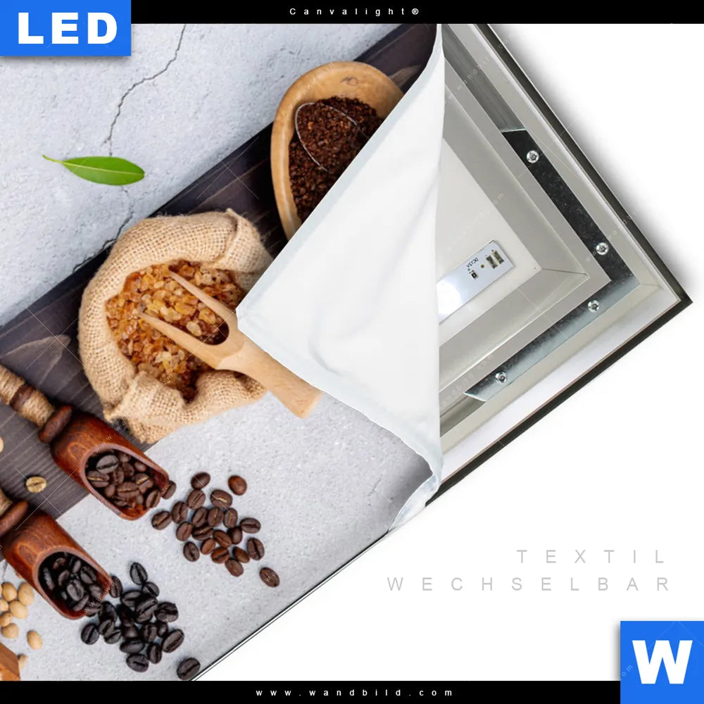 LED-Textilrahmen-Bild mit austauschbarem Essen - Trinken Textil-Druck (Wechselbild)