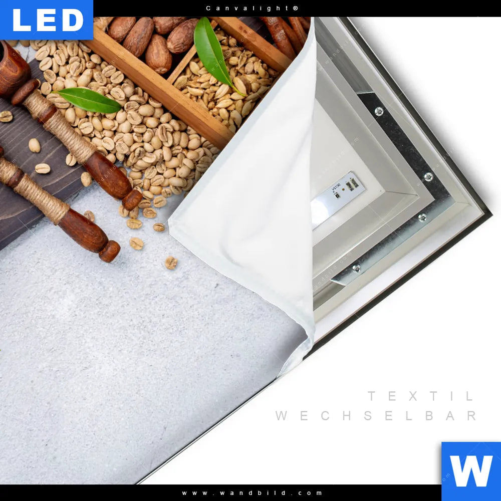 LED-Textilrahmen-Bild mit austauschbarem Essen - Trinken Textil-Druck (Wechselbild)