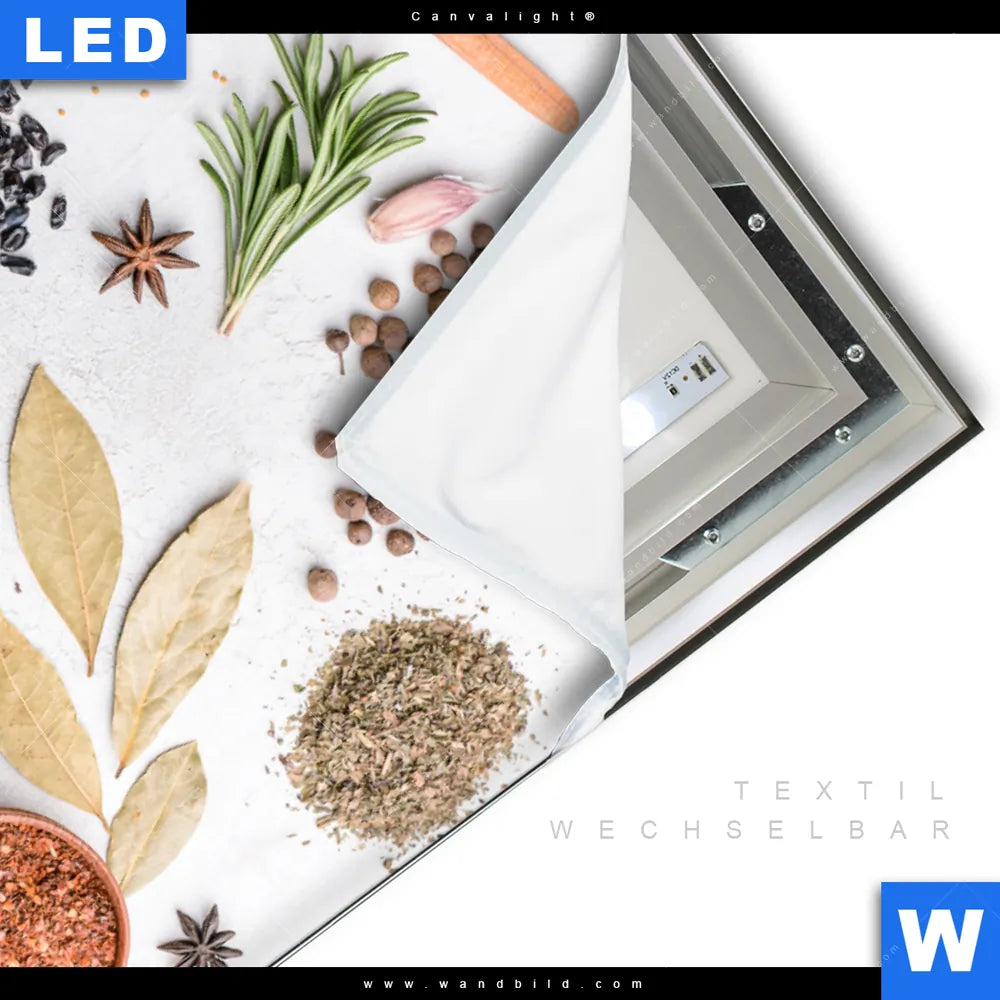 Canvalight® TEX Leuchtbild | Gewürze auf hellem Untergrund | Hochformat