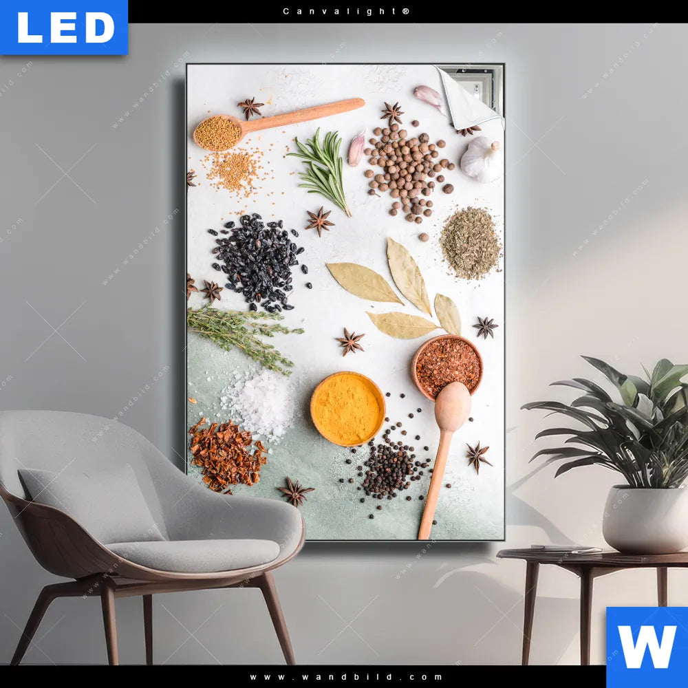 Canvalight® Leuchtbild | Gewürze auf hellem Untergrund | Hochformat