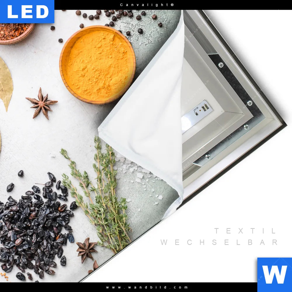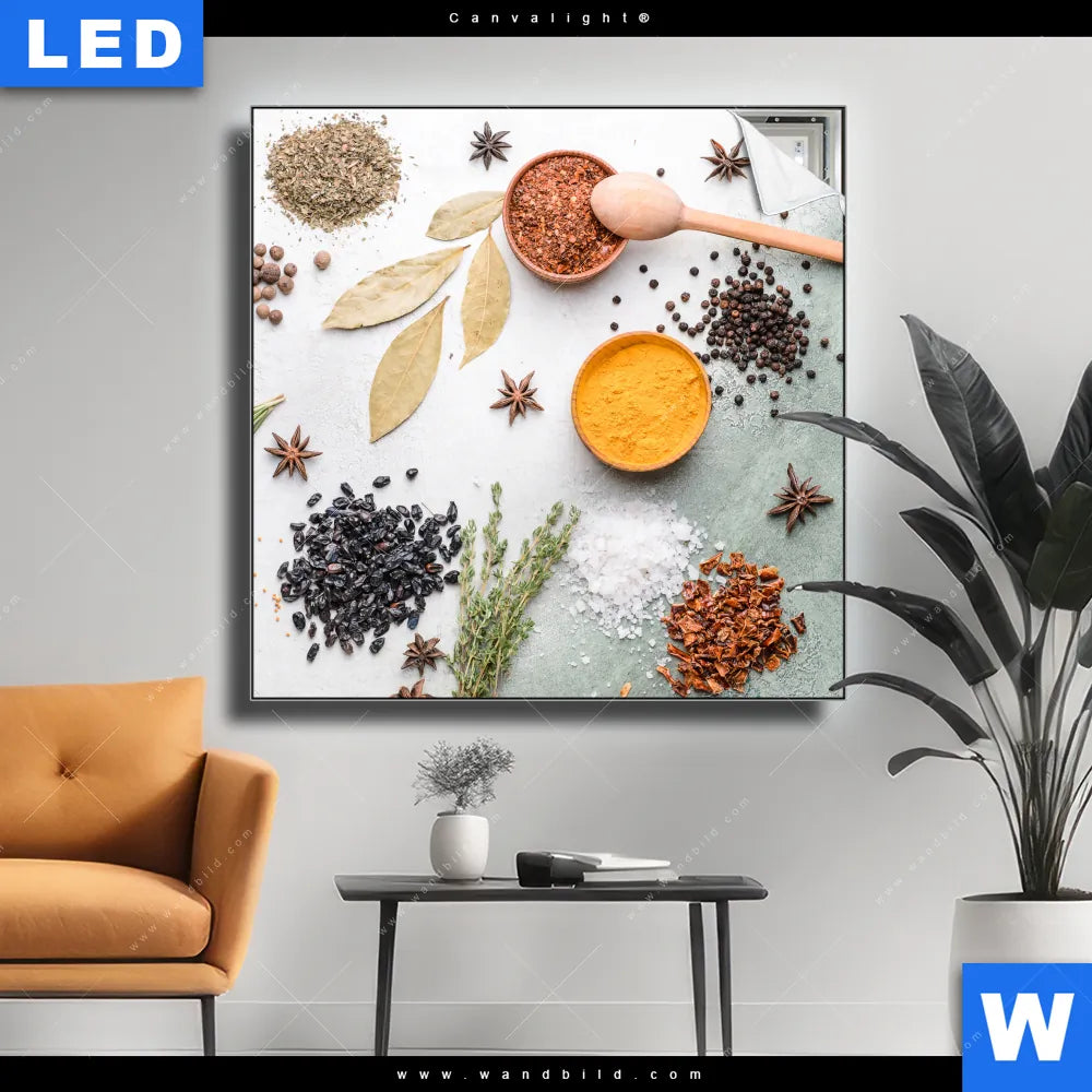 Canvalight® TEX Leuchtbild | Gewürze auf hellem Untergrund | Quadrat