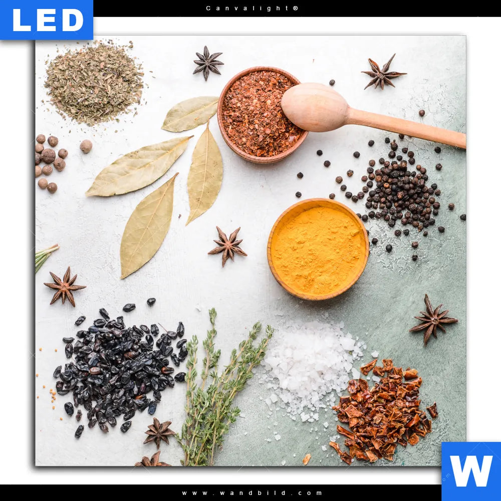 Canvalight® Leuchtbild | Gewürze auf hellem Untergrund | Quadrat