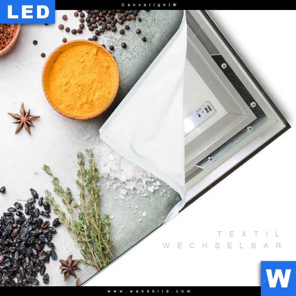 Canvalight® TEX Leuchtbild | Gewürze auf hellem Untergrund | Querformat