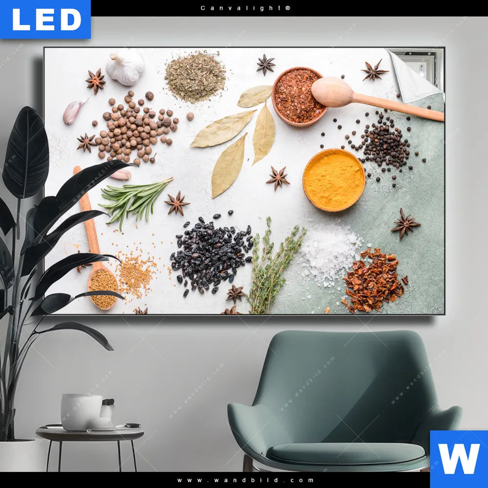 Canvalight® Leuchtbild | Gewürze auf hellem Untergrund | Querformat