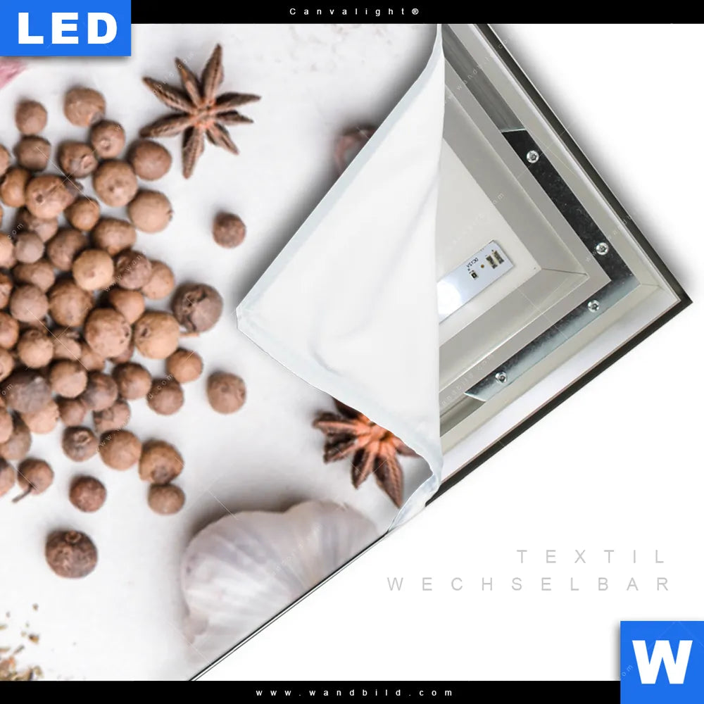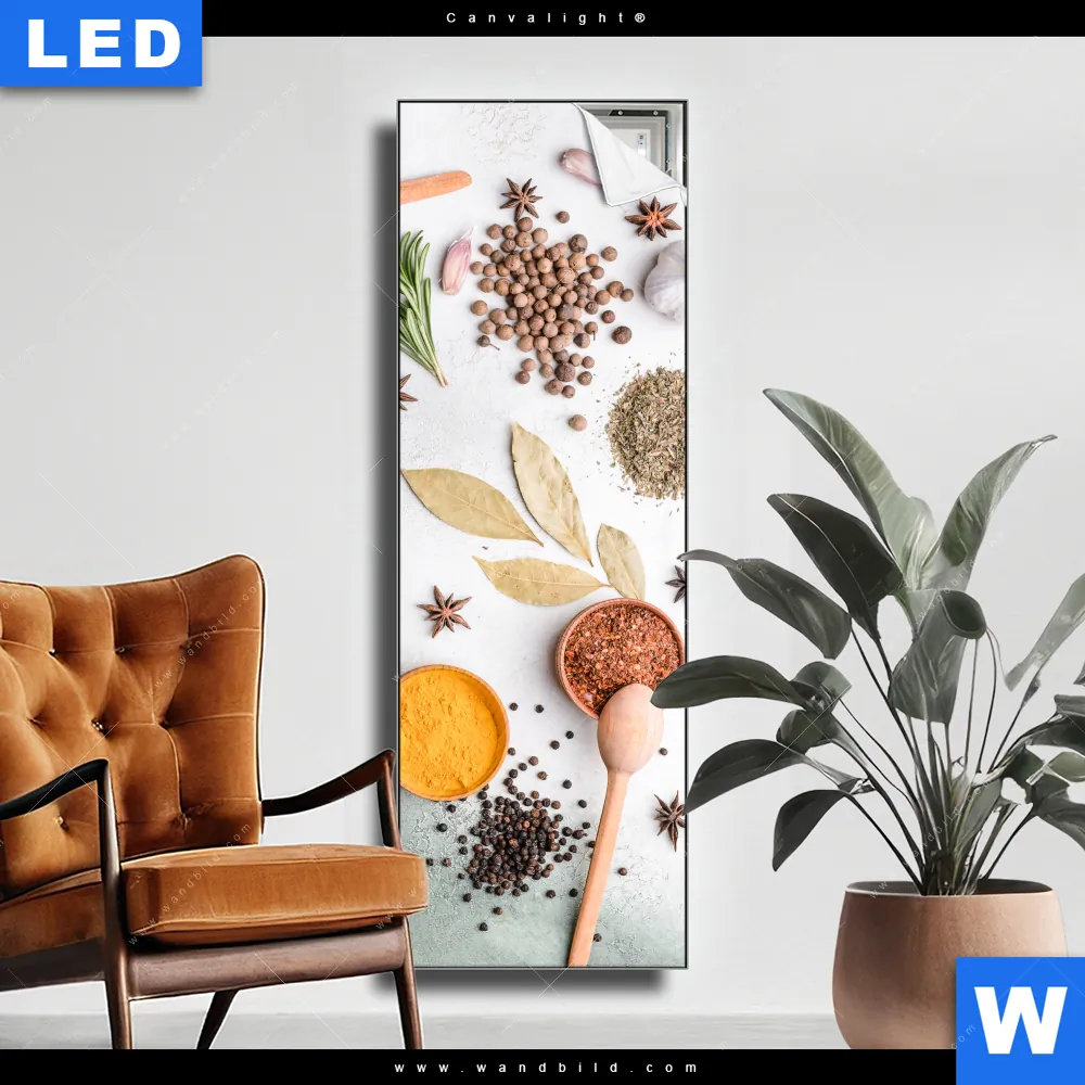 Canvalight® TEX Leuchtbild | Gewürze auf hellem Untergrund | Schmal