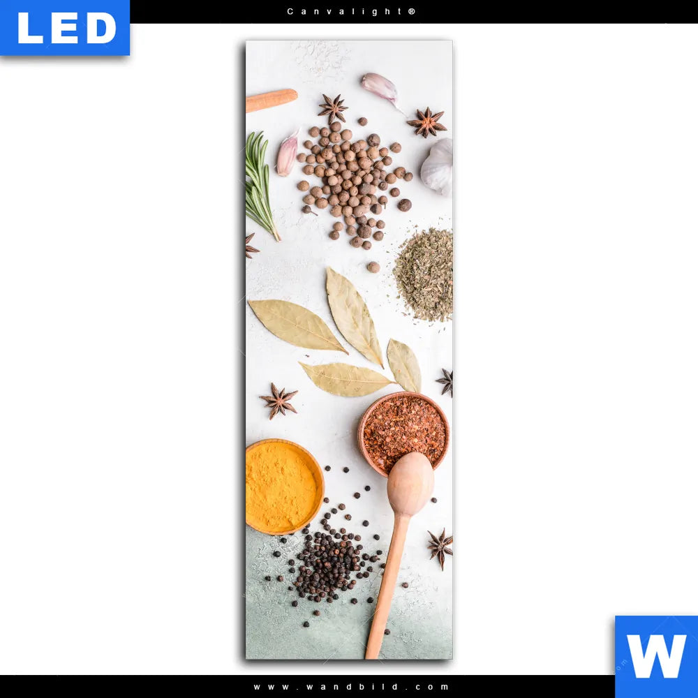 Canvalight® Leuchtbild | Gewürze auf hellem Untergrund | Schmal