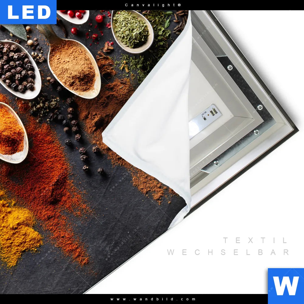LED-Textilrahmen-Bild mit austauschbarem Essen - Trinken Textil-Druck (Wechselbild)