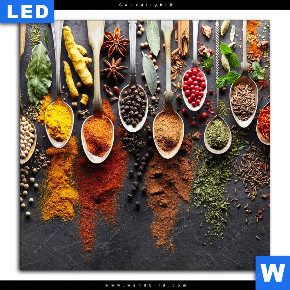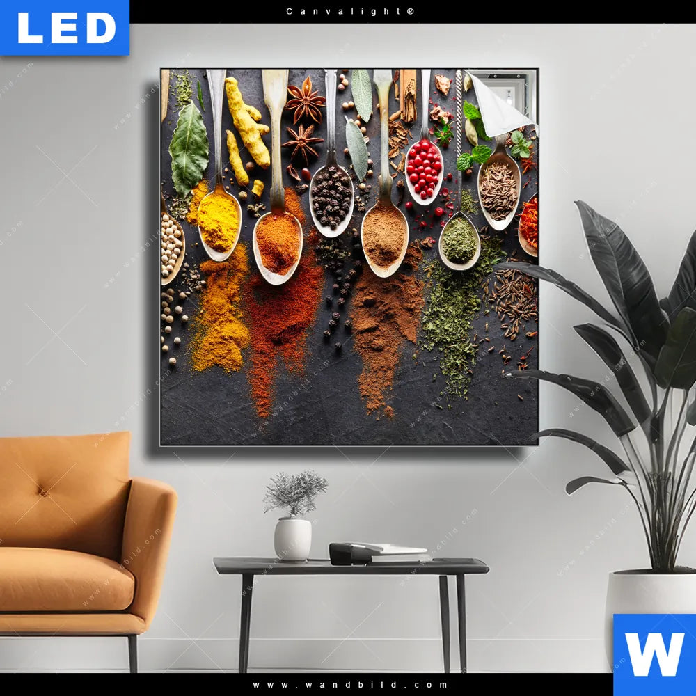 Canvalight® TEX Leuchtbild | Gewürze auf Löffeln No. 2 | Quadrat