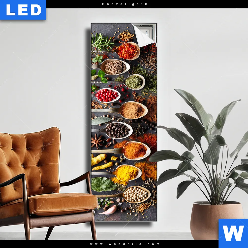 Canvalight® Leuchtbild | Gewürze auf Löffeln No. 2 | Schmal