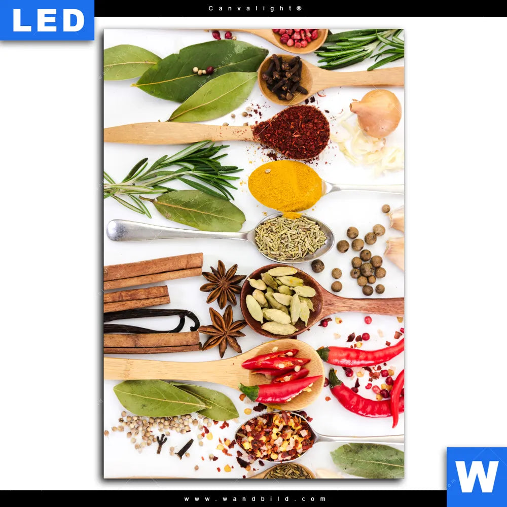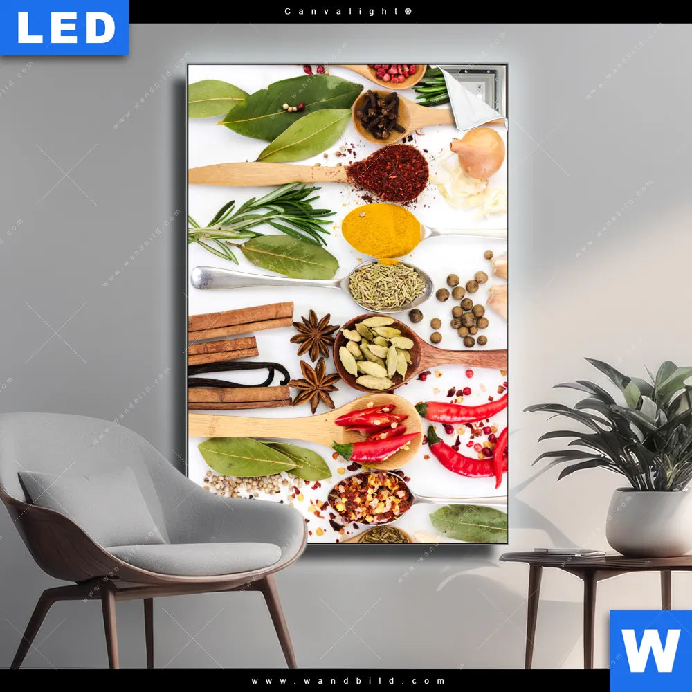Canvalight® Leuchtbild | Gewürze auf Löffeln - weiß | Hochformat