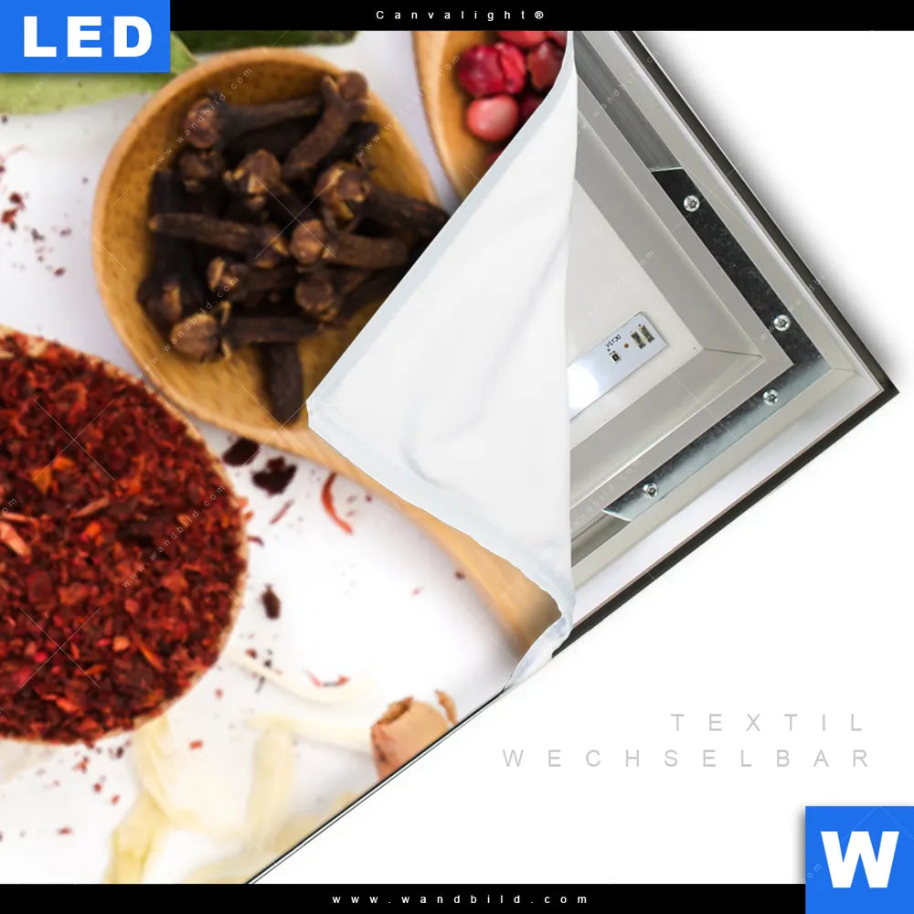 Canvalight® TEX Leuchtbild | Gewürze auf Löffeln - weiß | Schmal