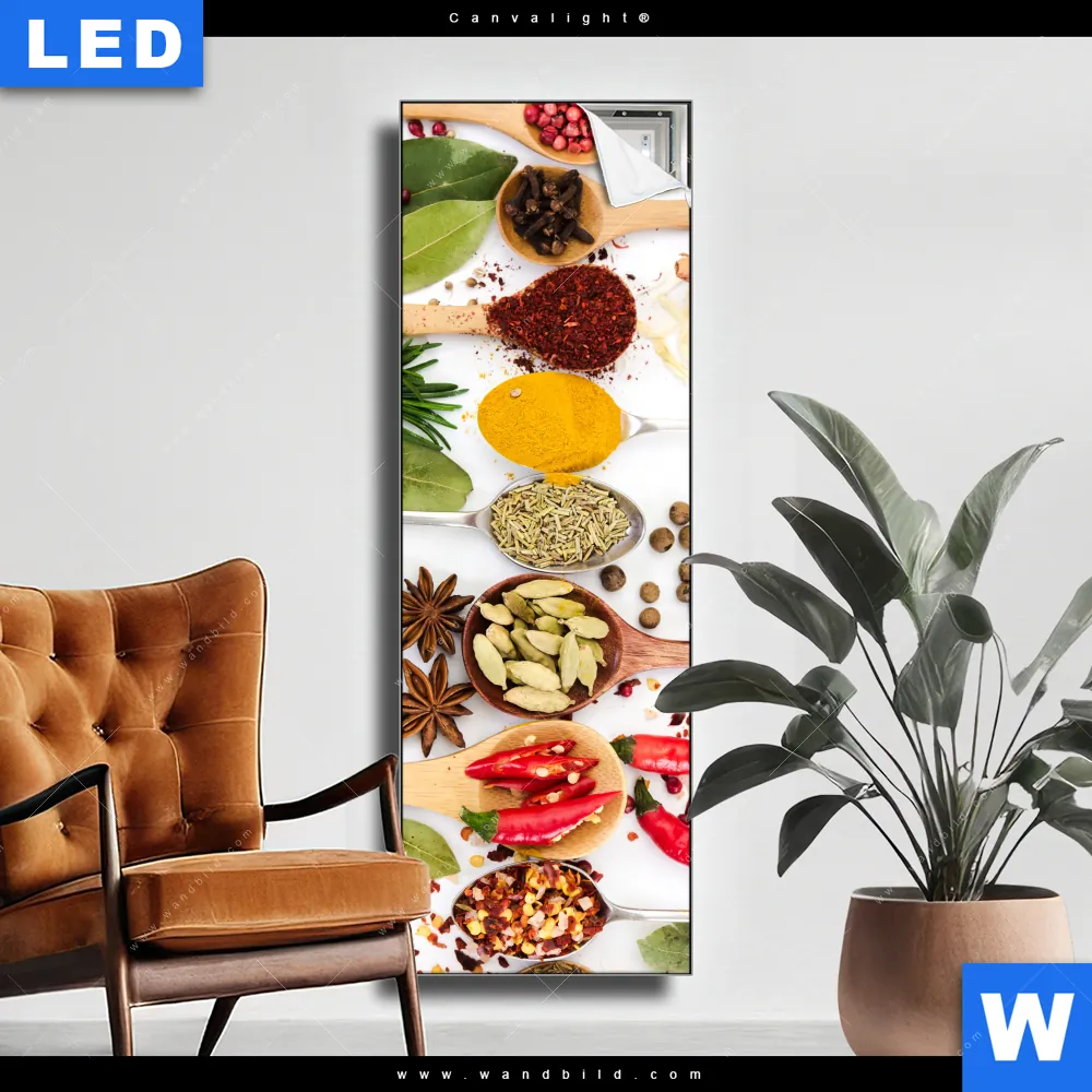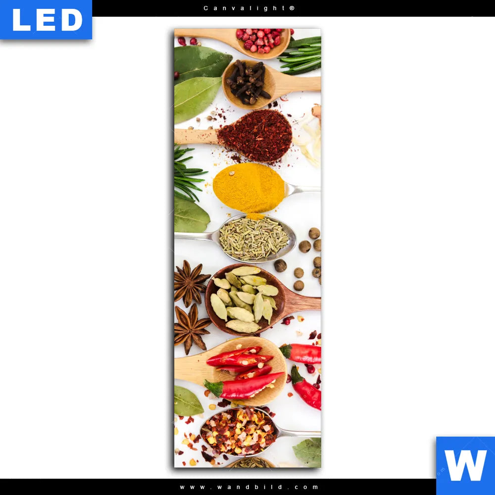 Canvalight® Leuchtbild | Gewürze auf Löffeln - weiß | Schmal