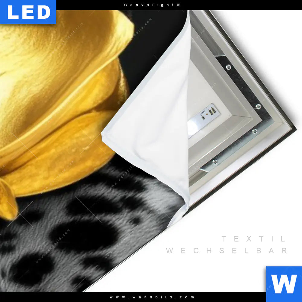 Canvalight® TEX Leuchtbild | Goldblumen & Panther | Schmal
